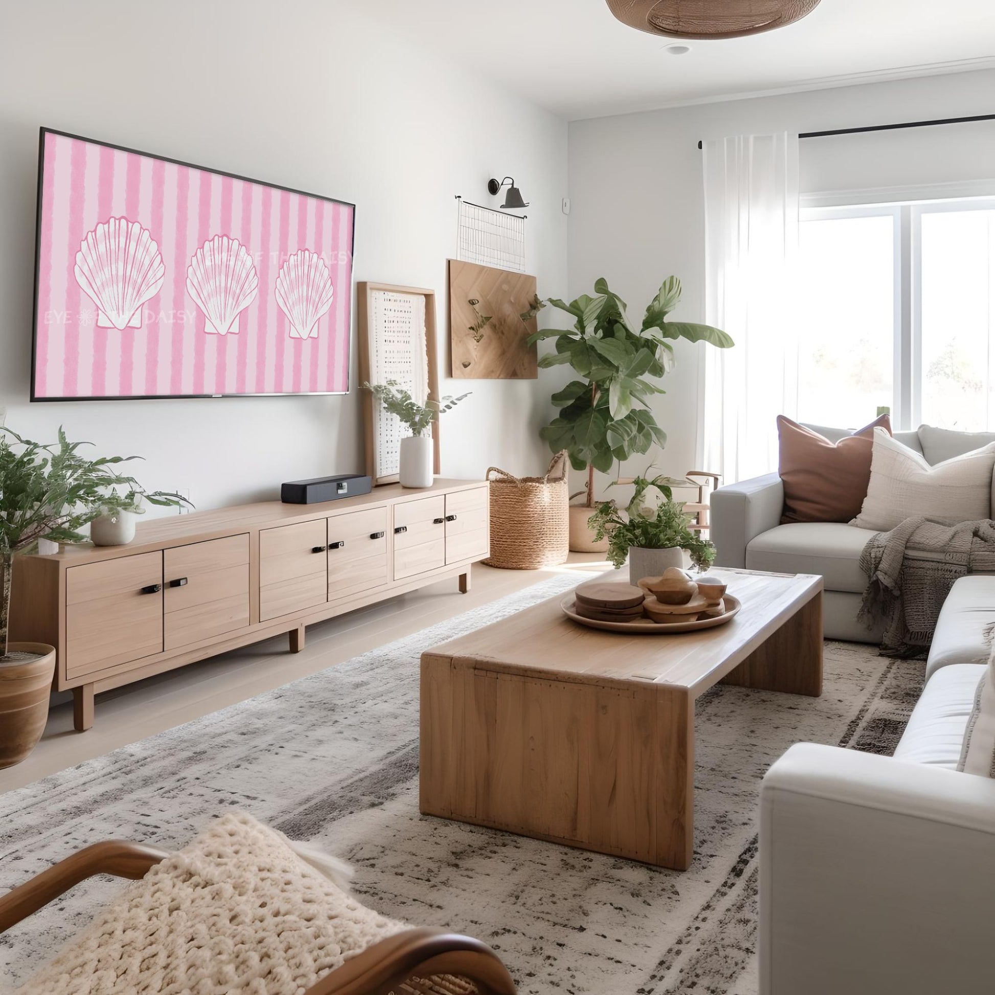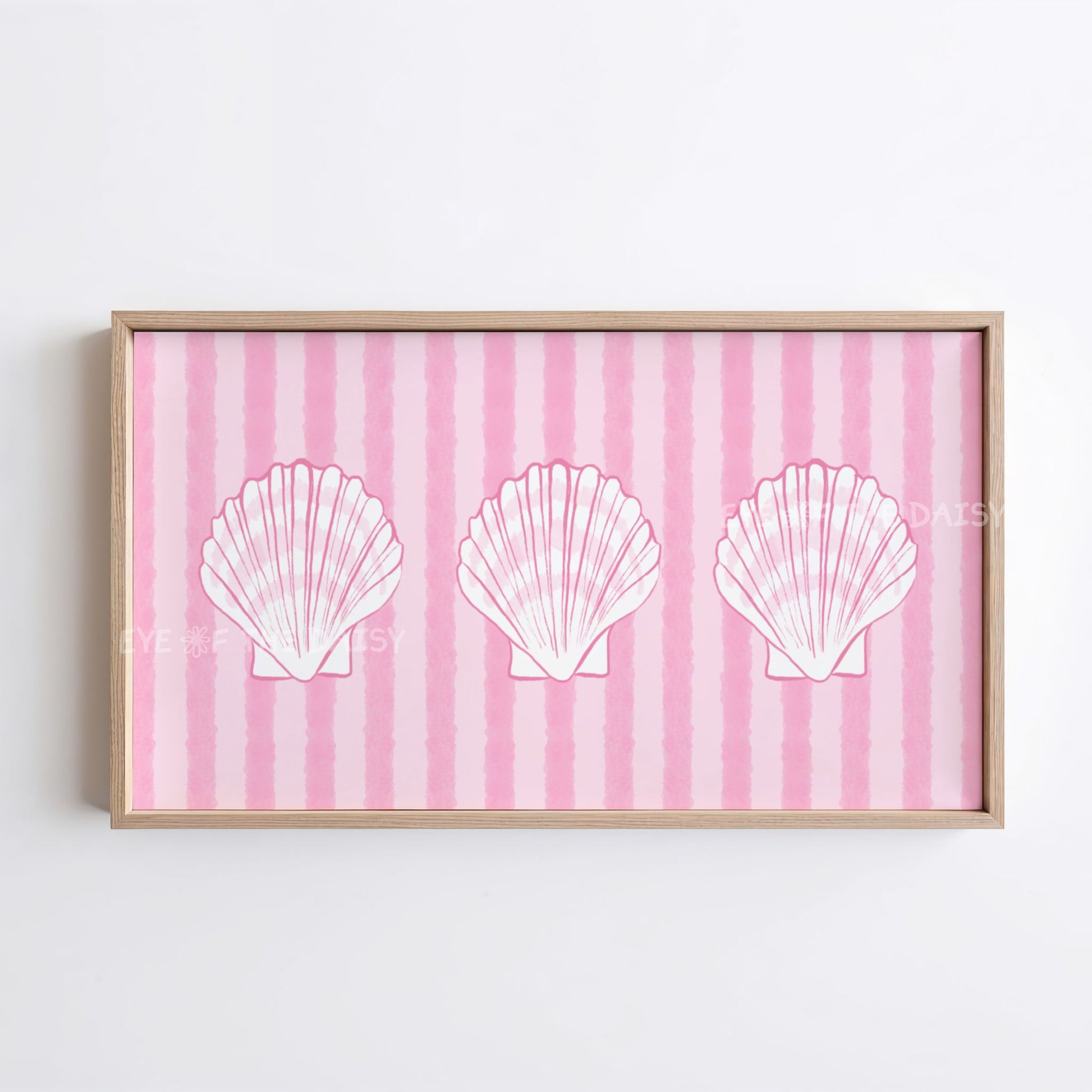 Pink White Shells 4K TV Art | Striped Coastal Sea Shells 4K Art for TV Screen