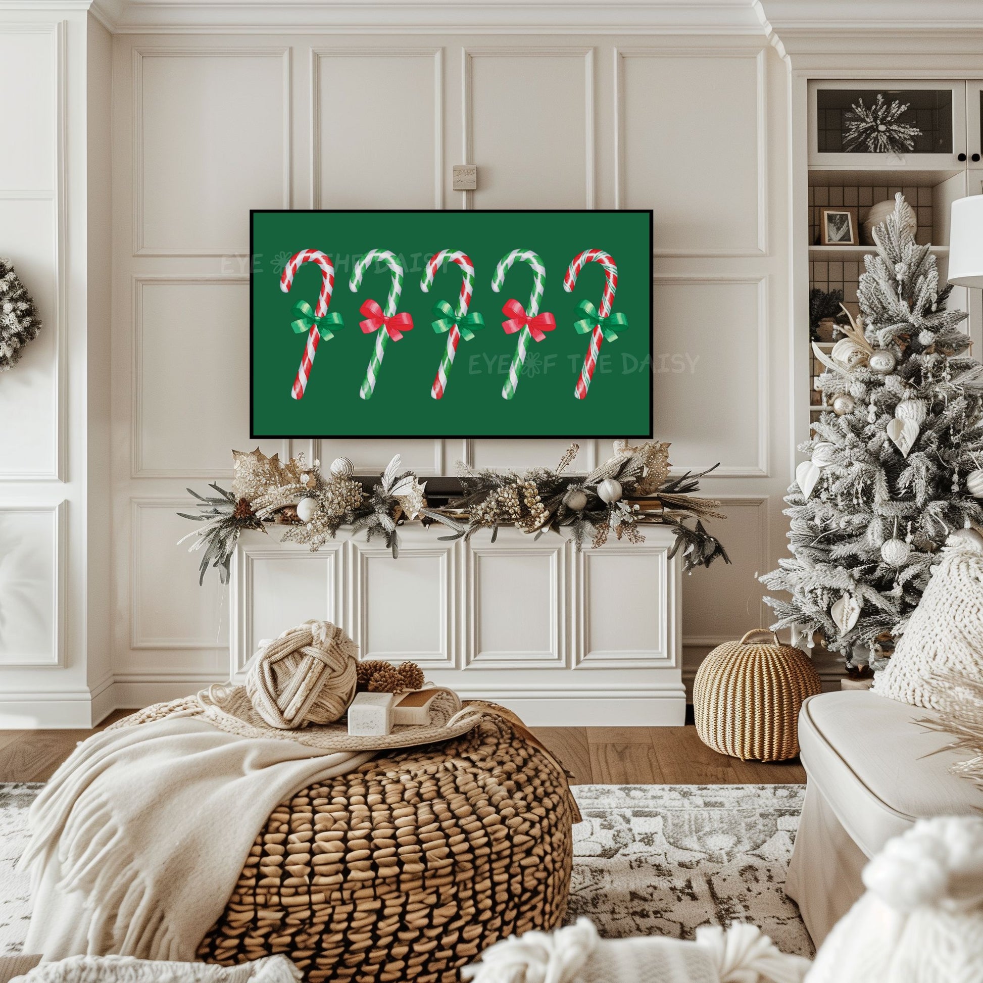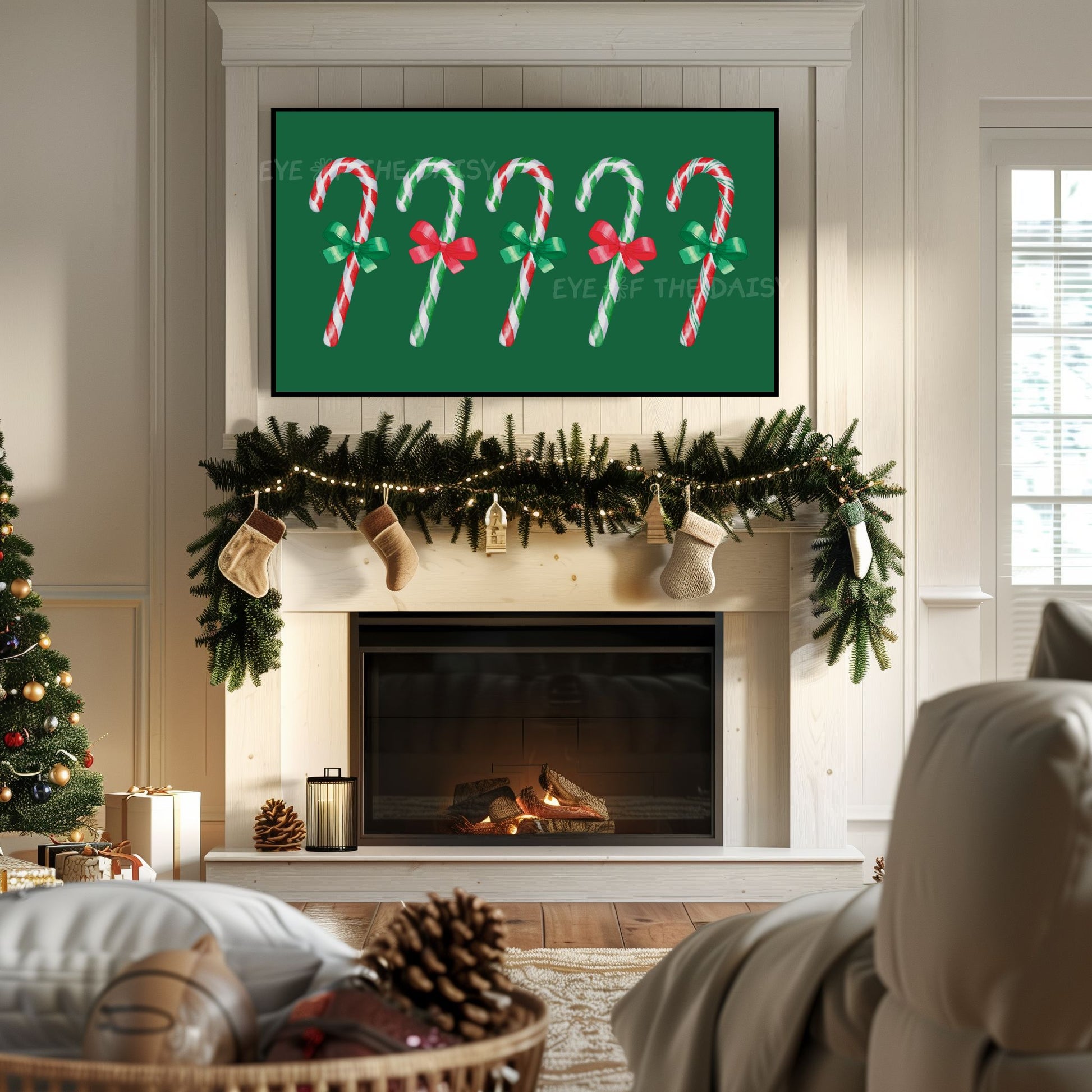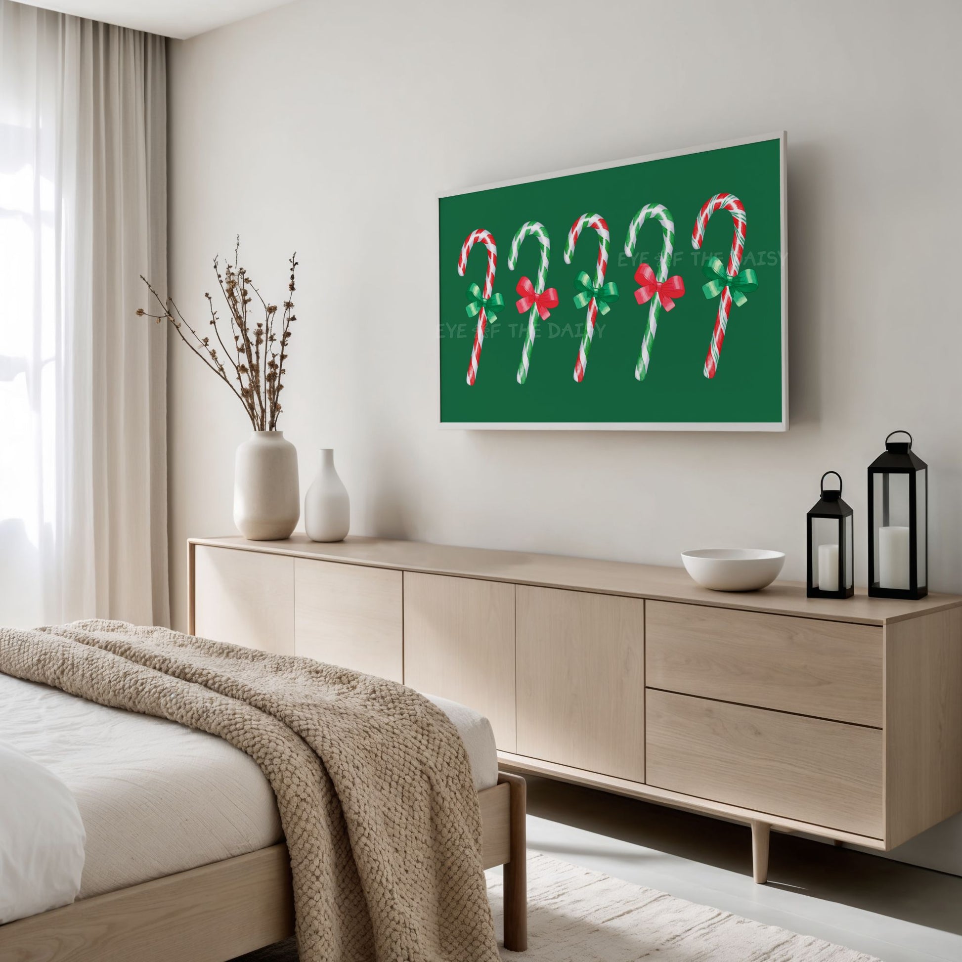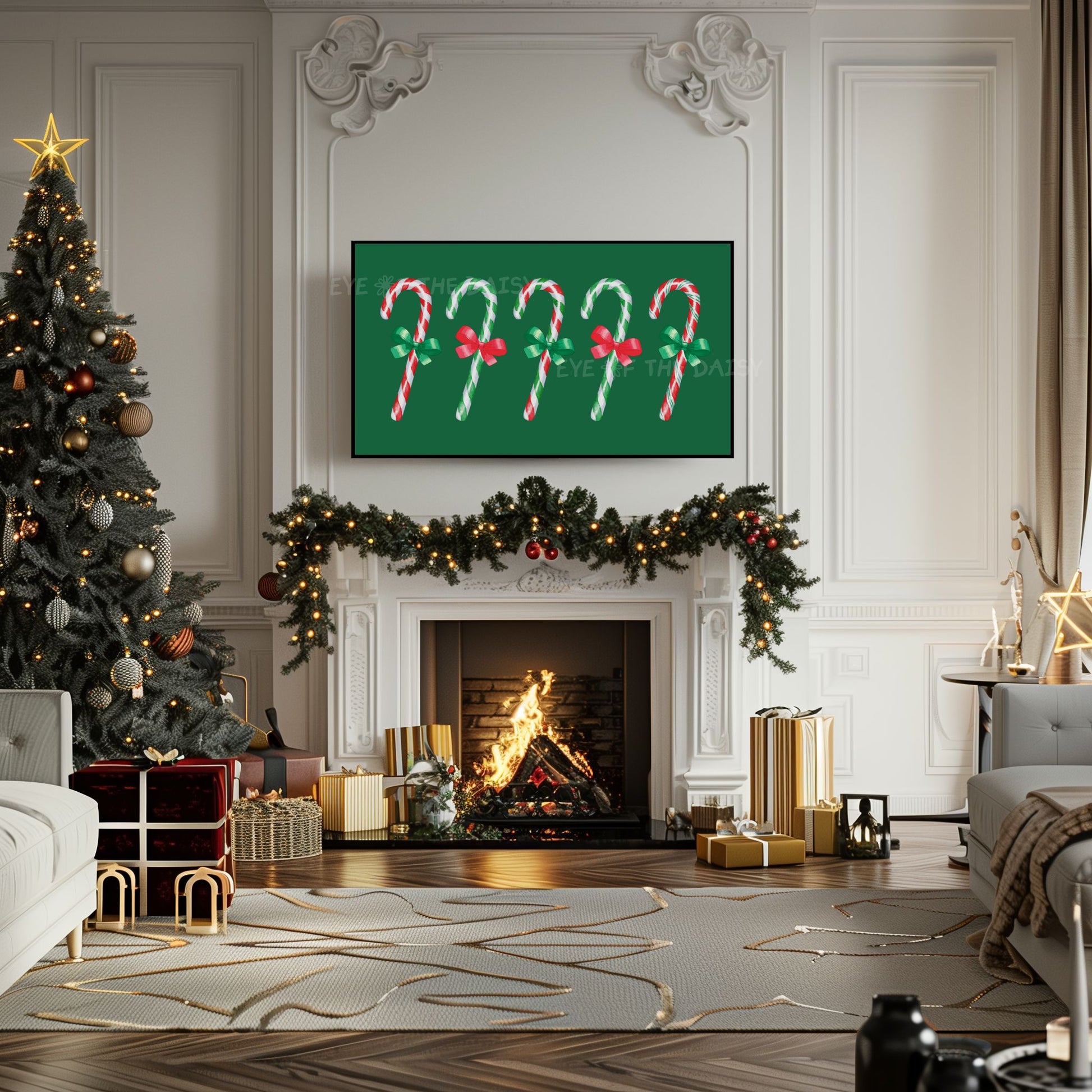 Red Green Christmas Candy Canes 4K TV Art | Traditional Watercolour Holiday TV Art 4K