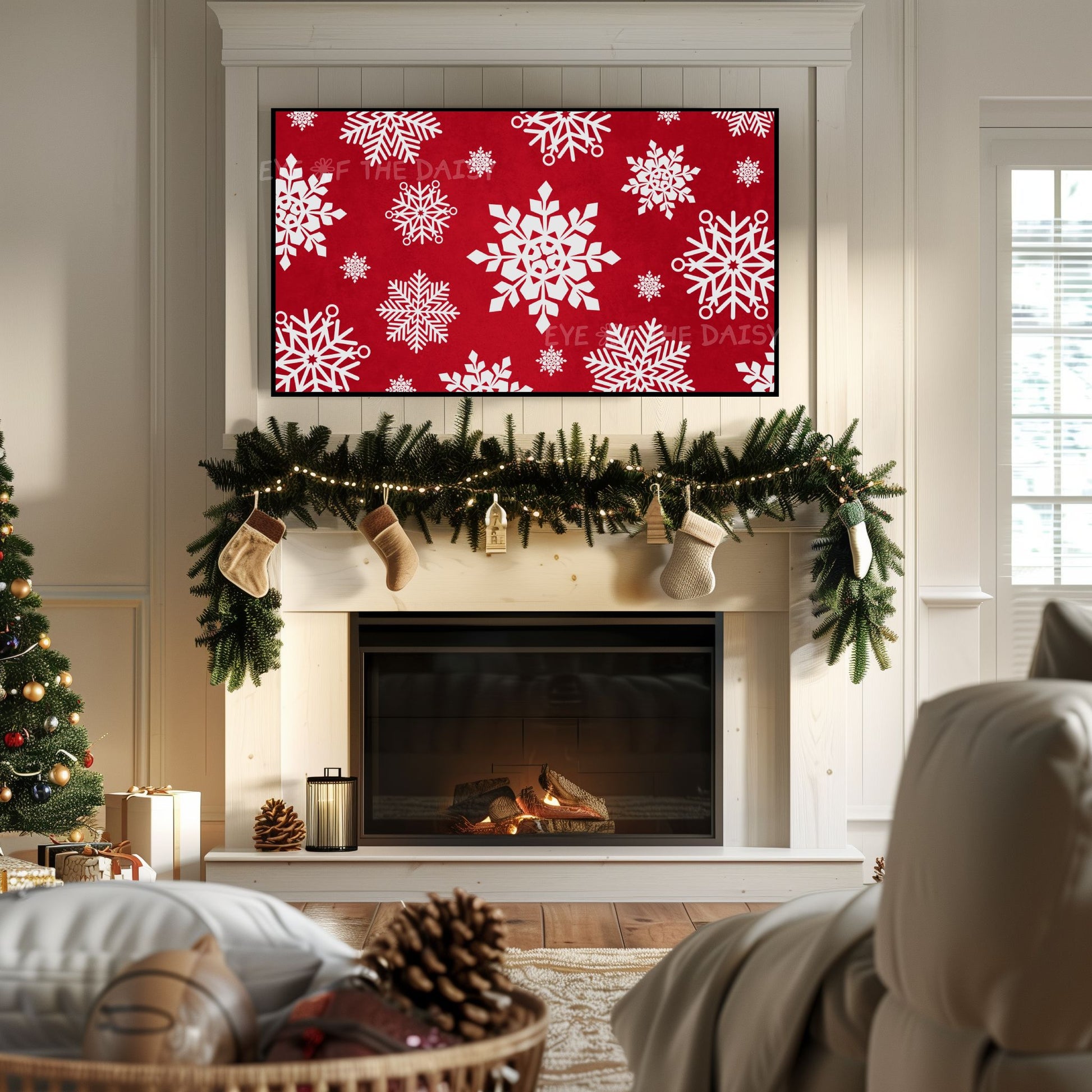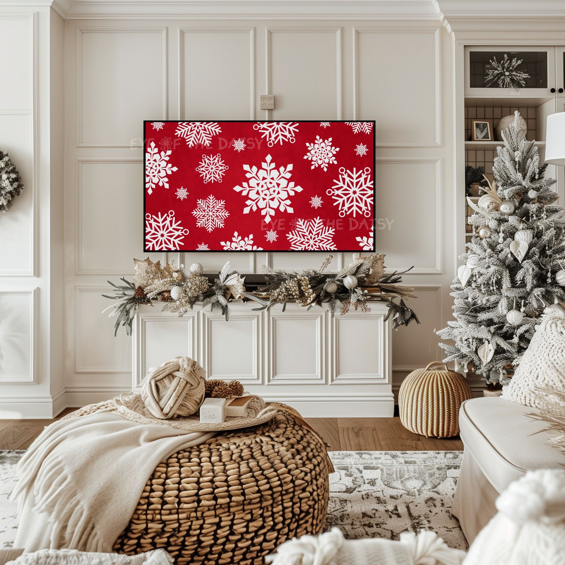 Red White Snowflakes Christmas 4K TV Art | Traditional Holiday TV Artwork 4K