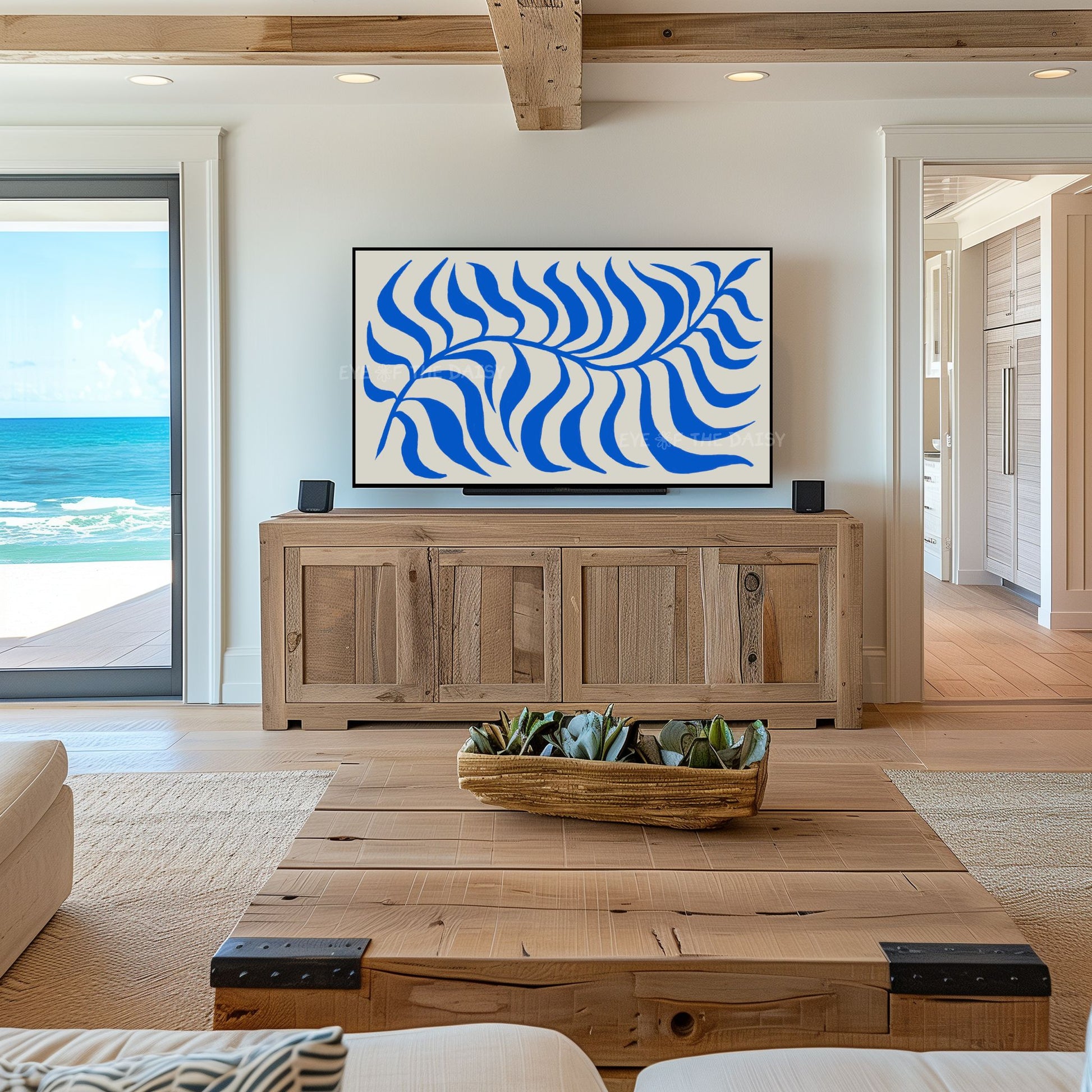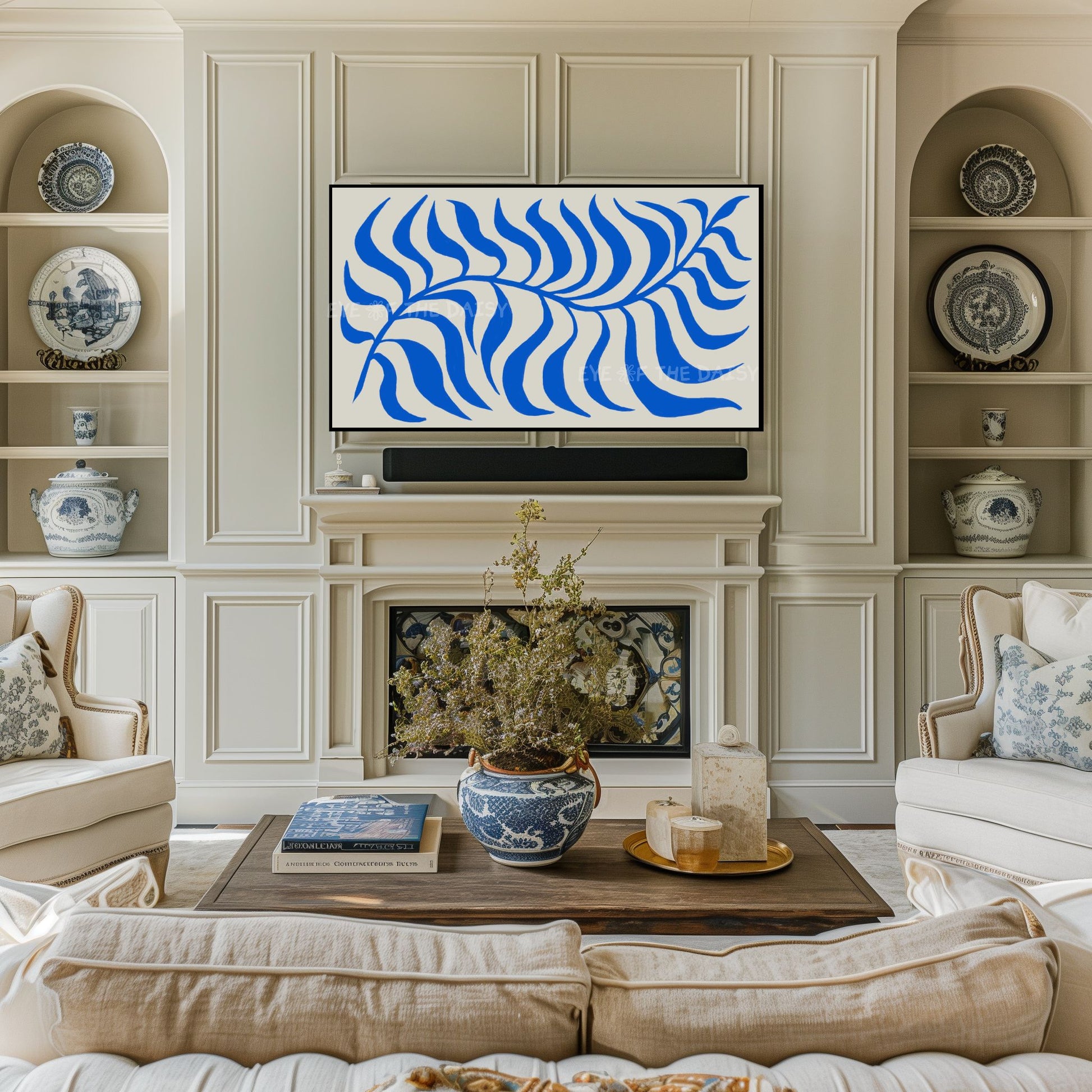 Royal Blue Abstract Leaf 4K TV Art | Modern Botanical 4K Art for TV Screen 4K
