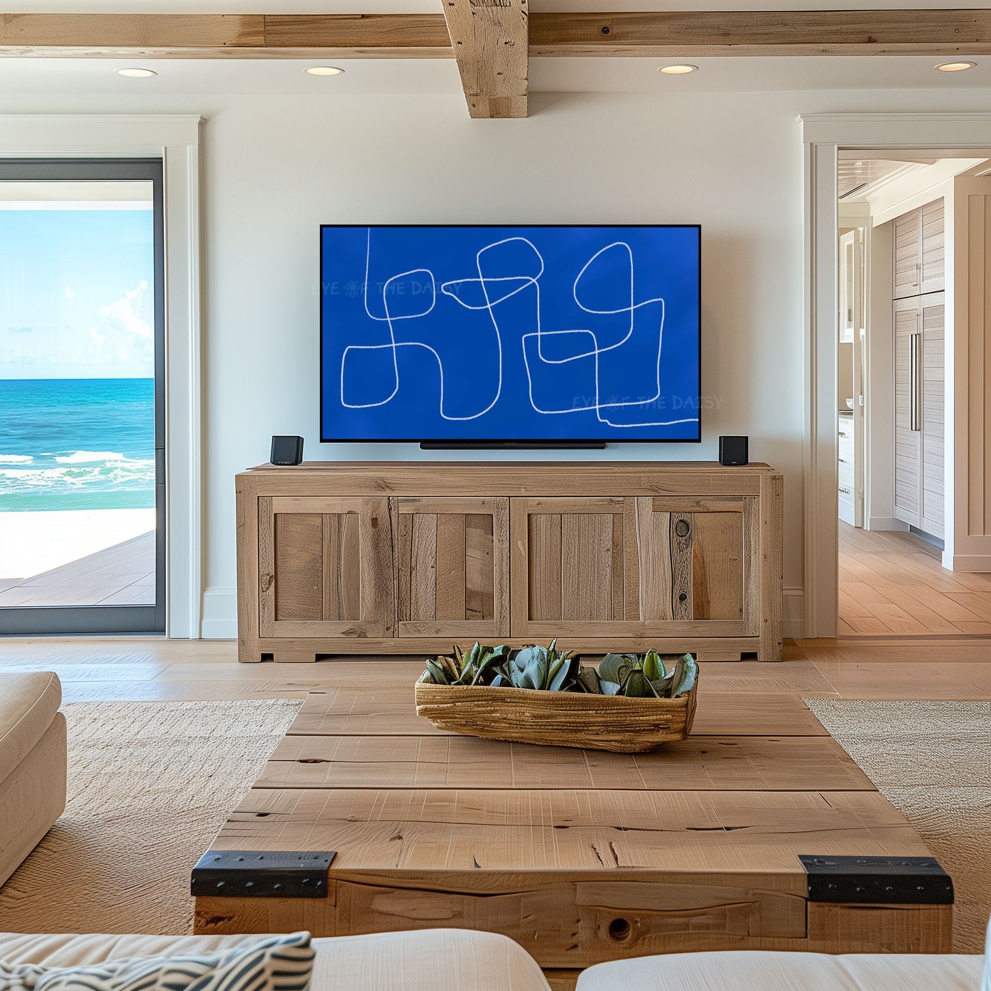 Royal Blue Modern Abstract 4K TV Art | Vibrant Blue Contemporary Line Art for TV Screen