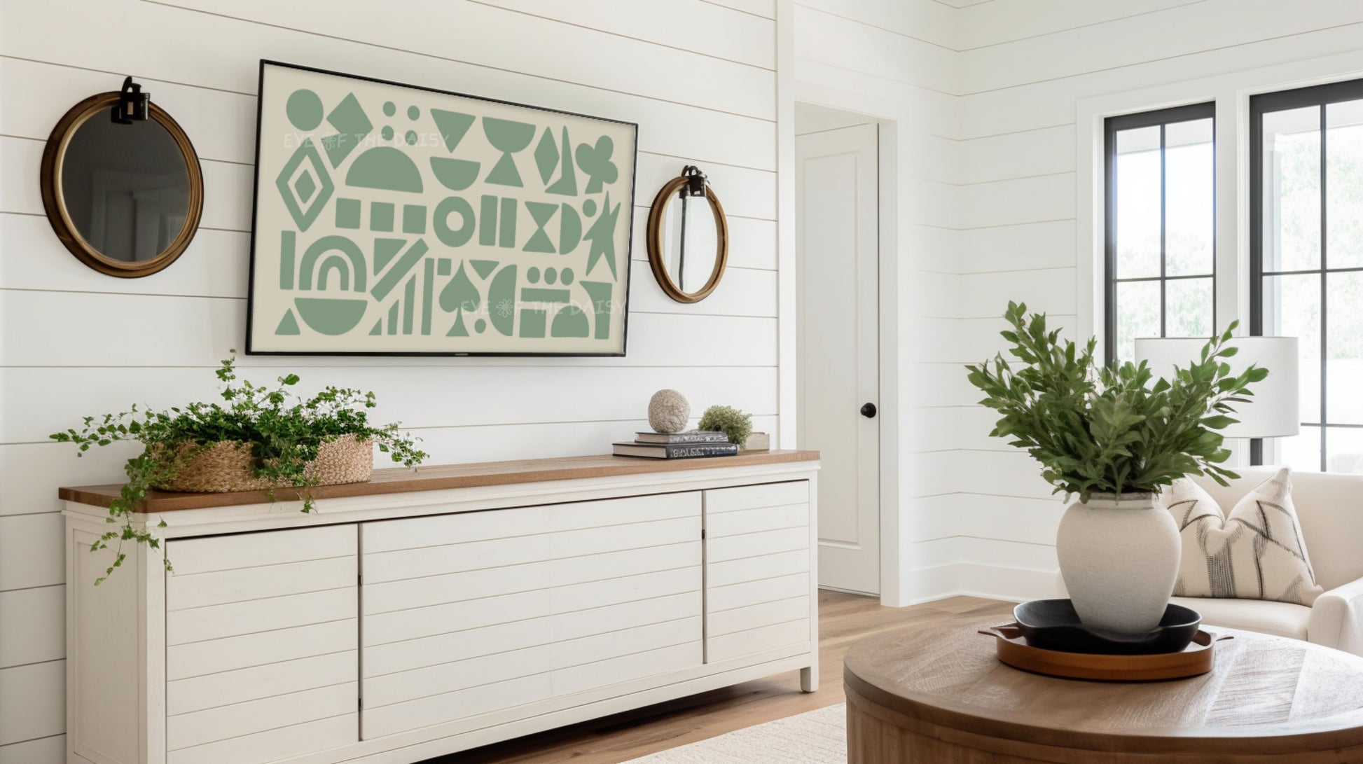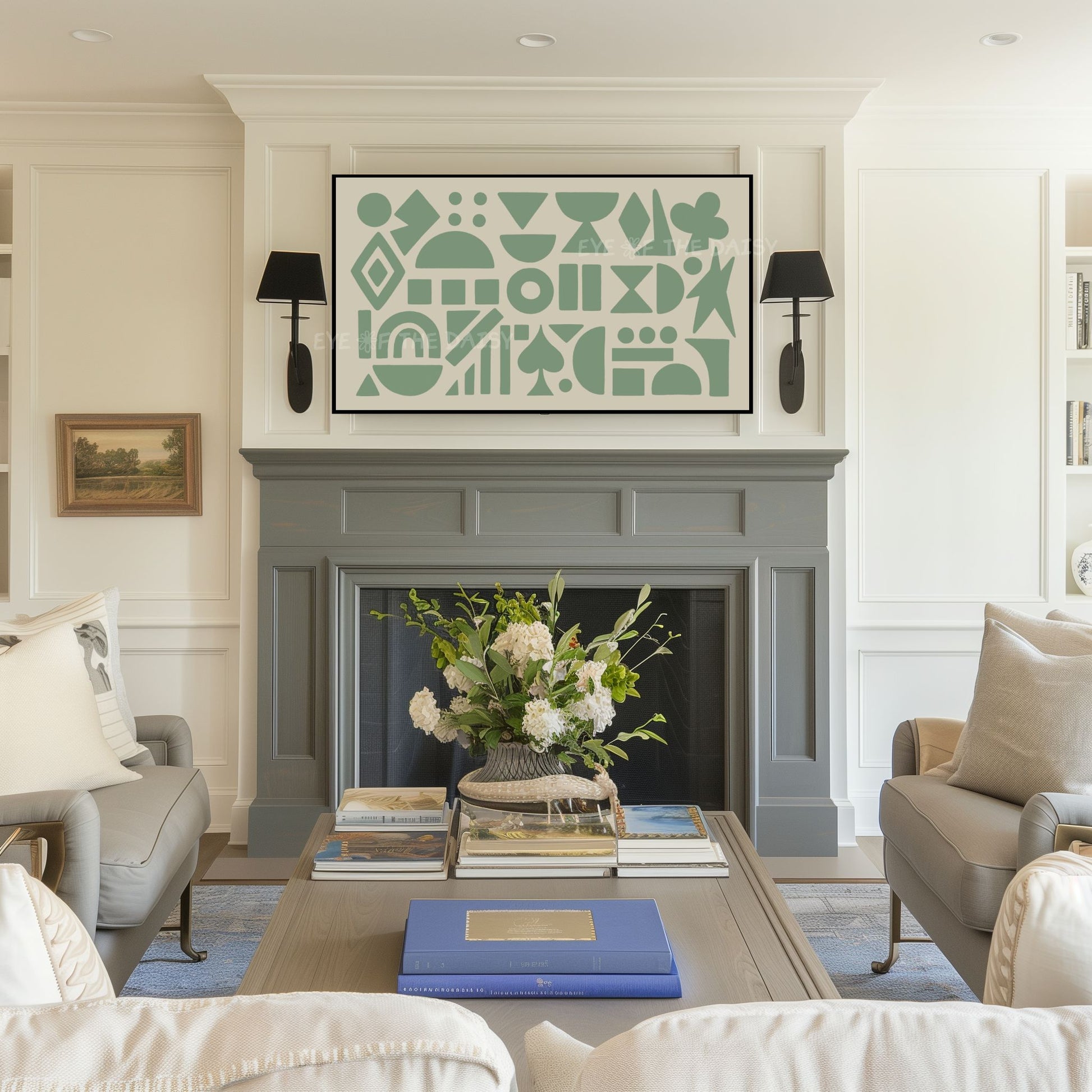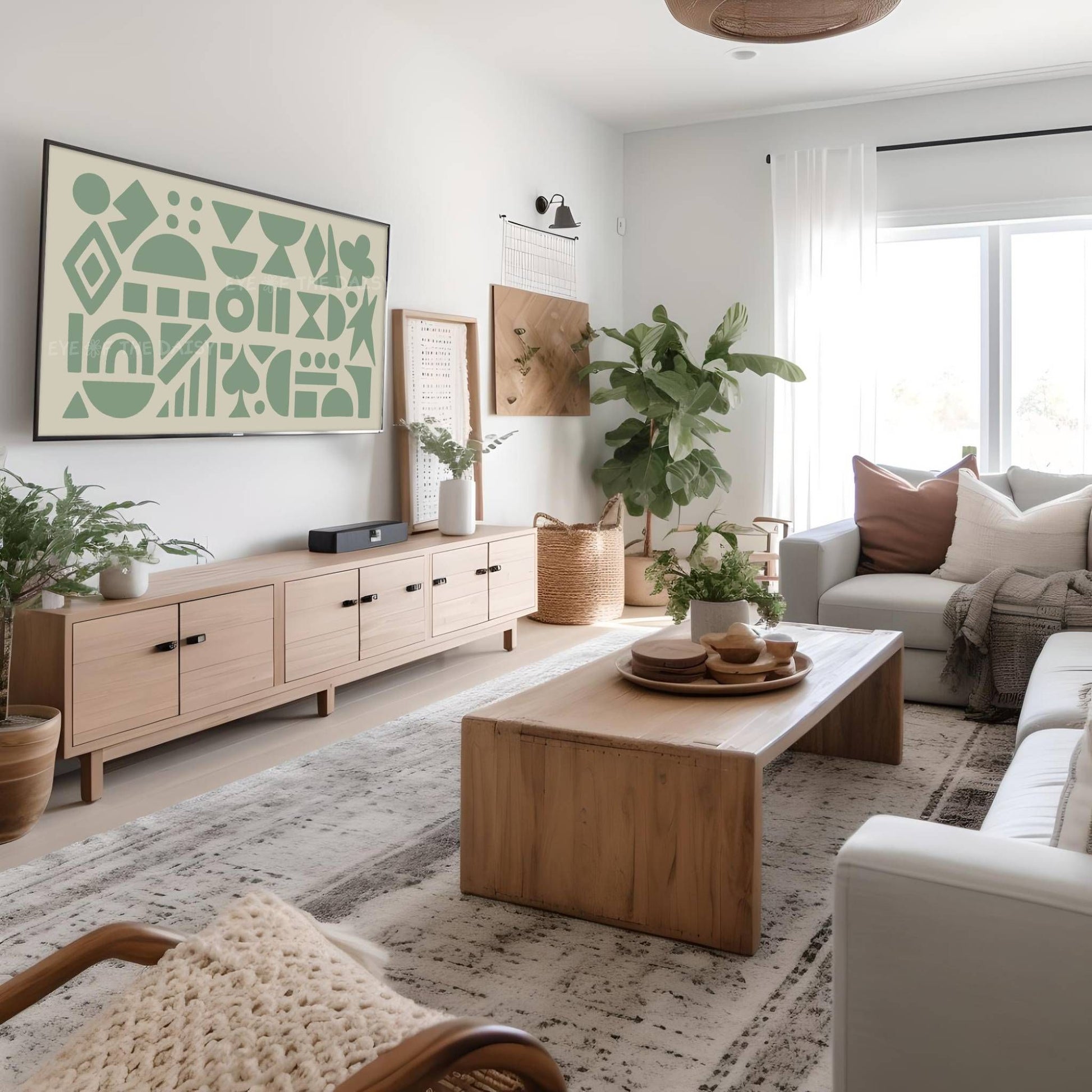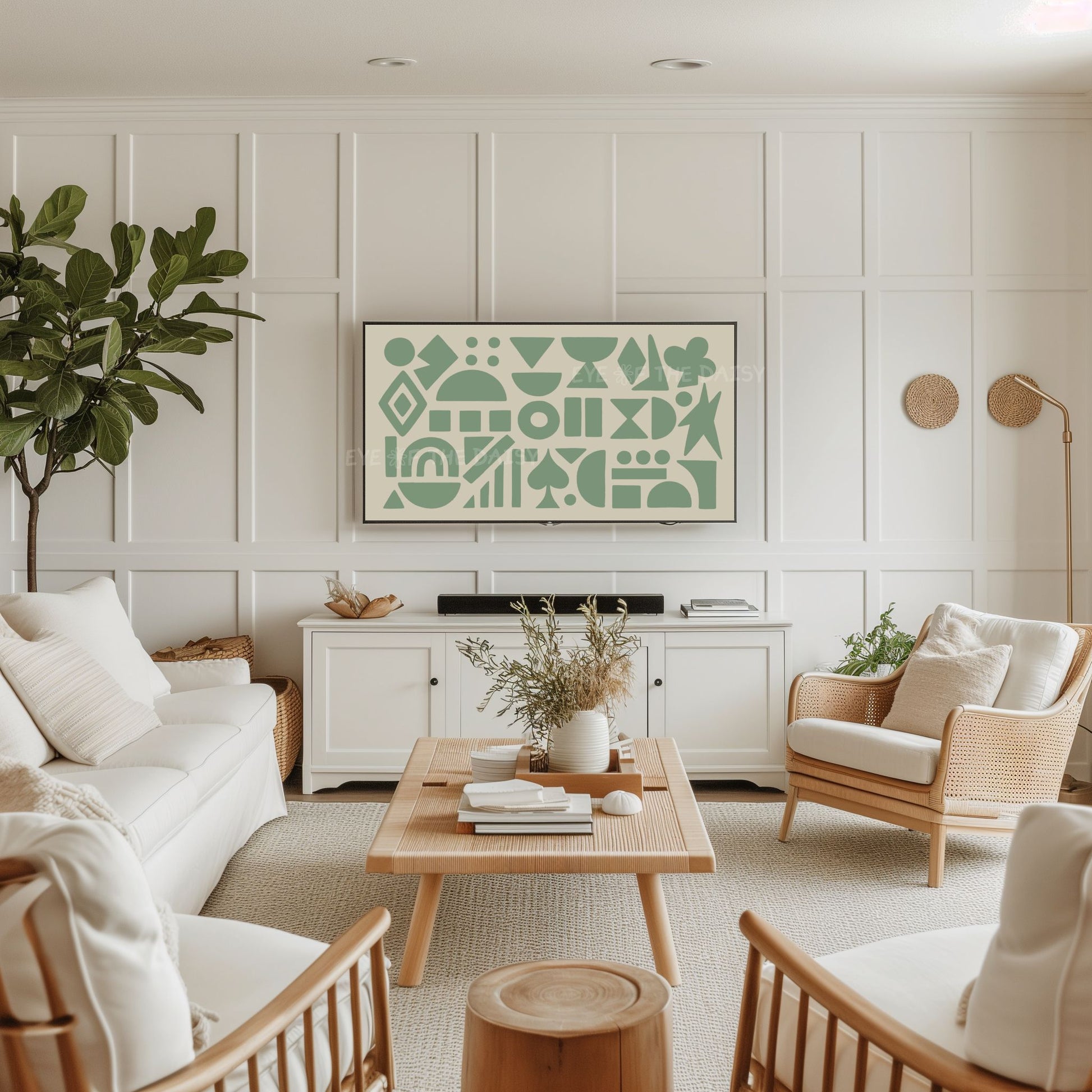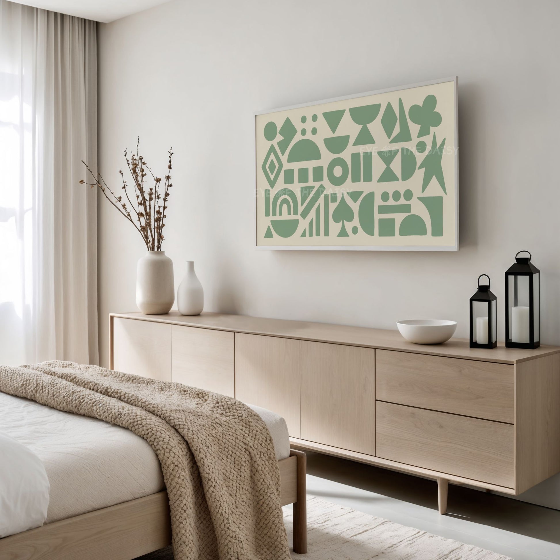 Sage Green Beige Abstract Shapes 4K TV Art | Boho Contemporary Geometric TV Art 4K