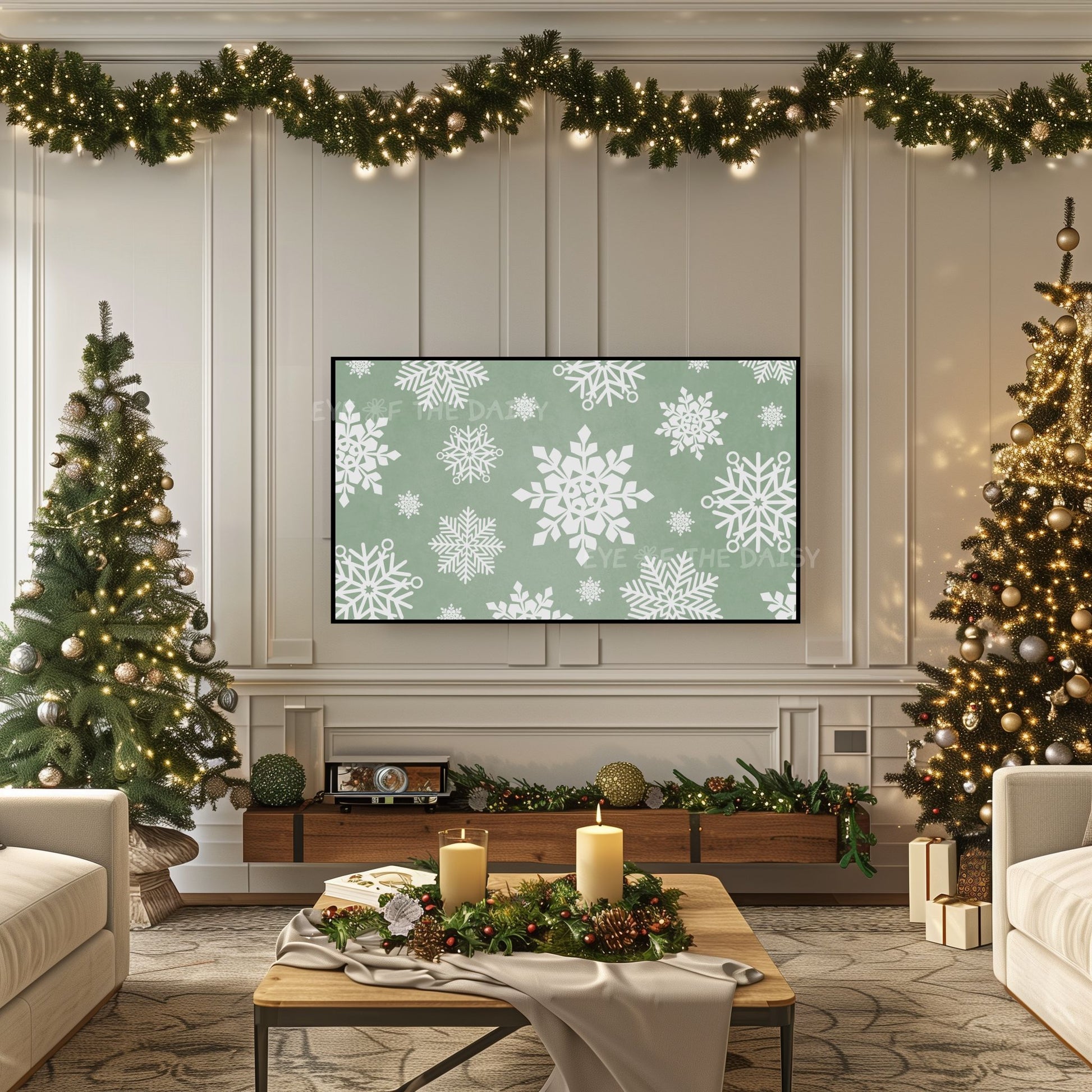 Sage Green Boho Christmas TV Art 4K | Sage Green Holiday Decor 4K TV Artwork