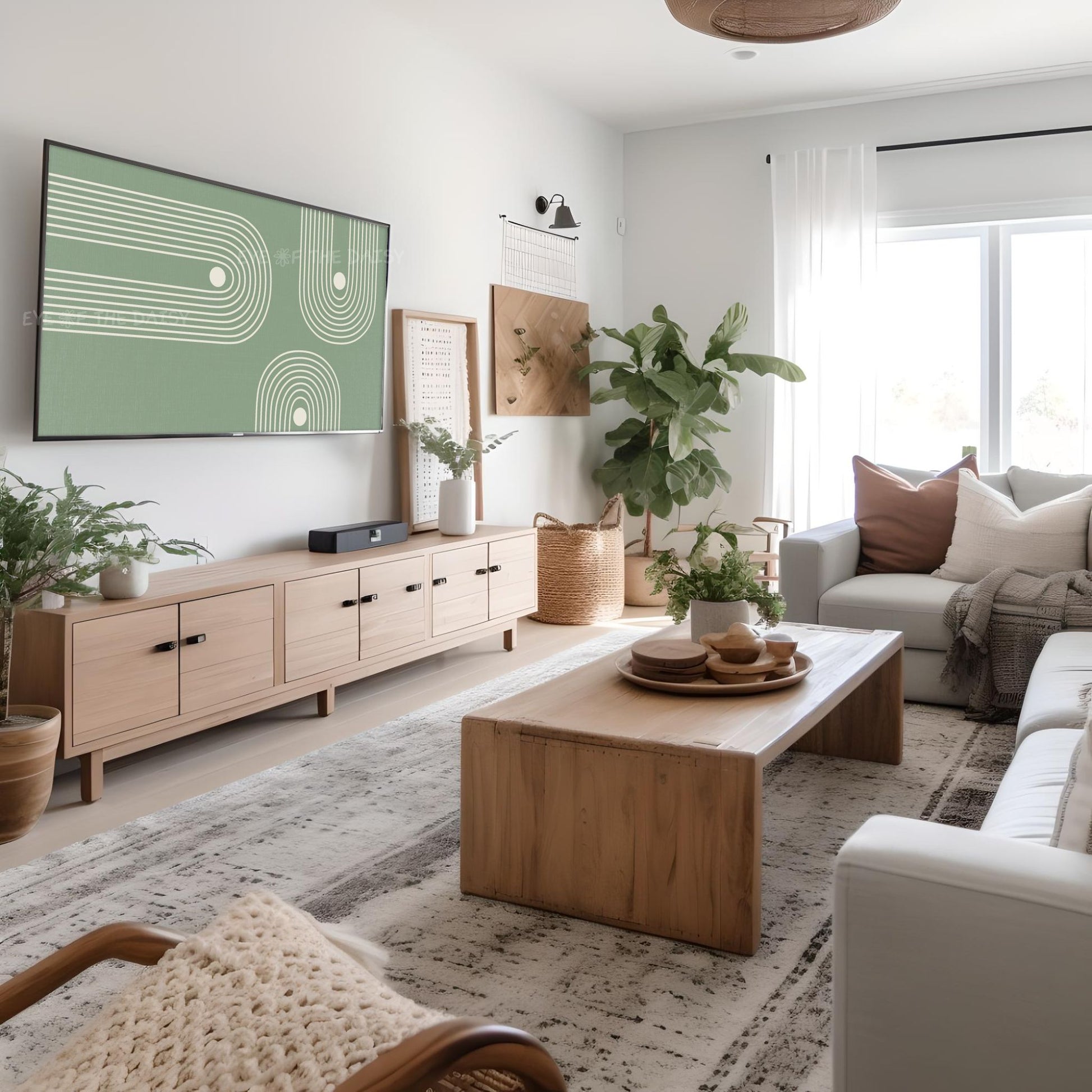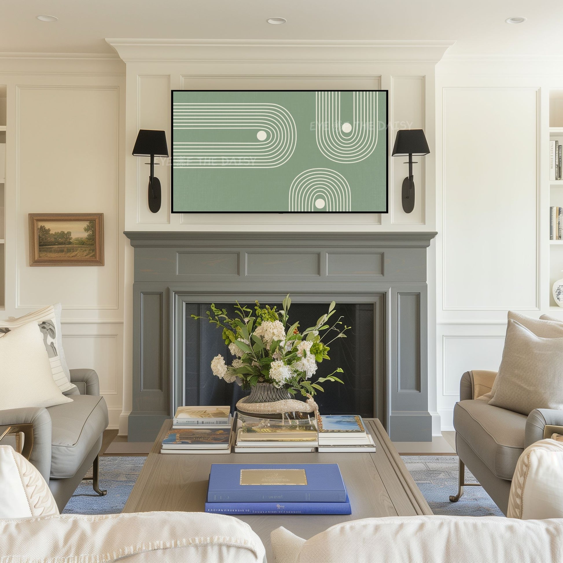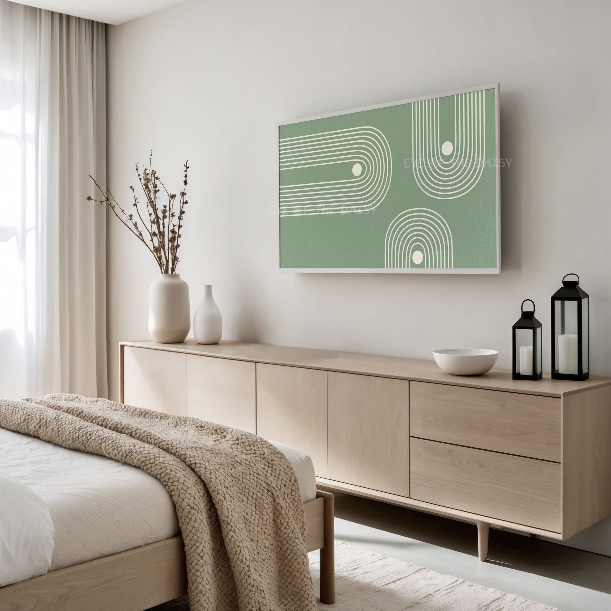 Sage Green Mid Century Modern Arches TV Art 4K | Geometric Minimal 4K TV Artwork