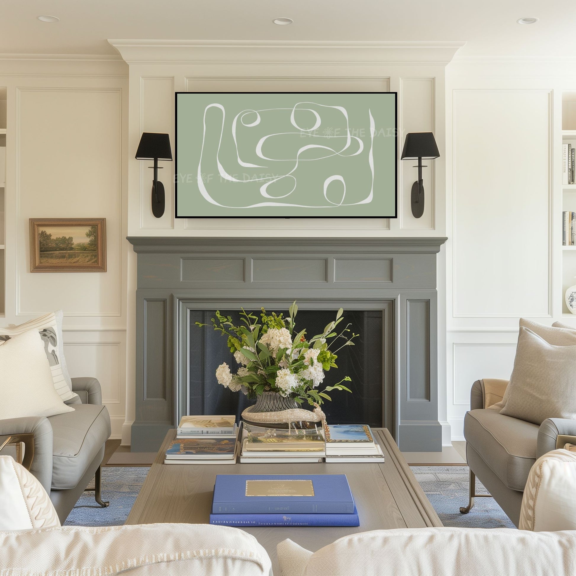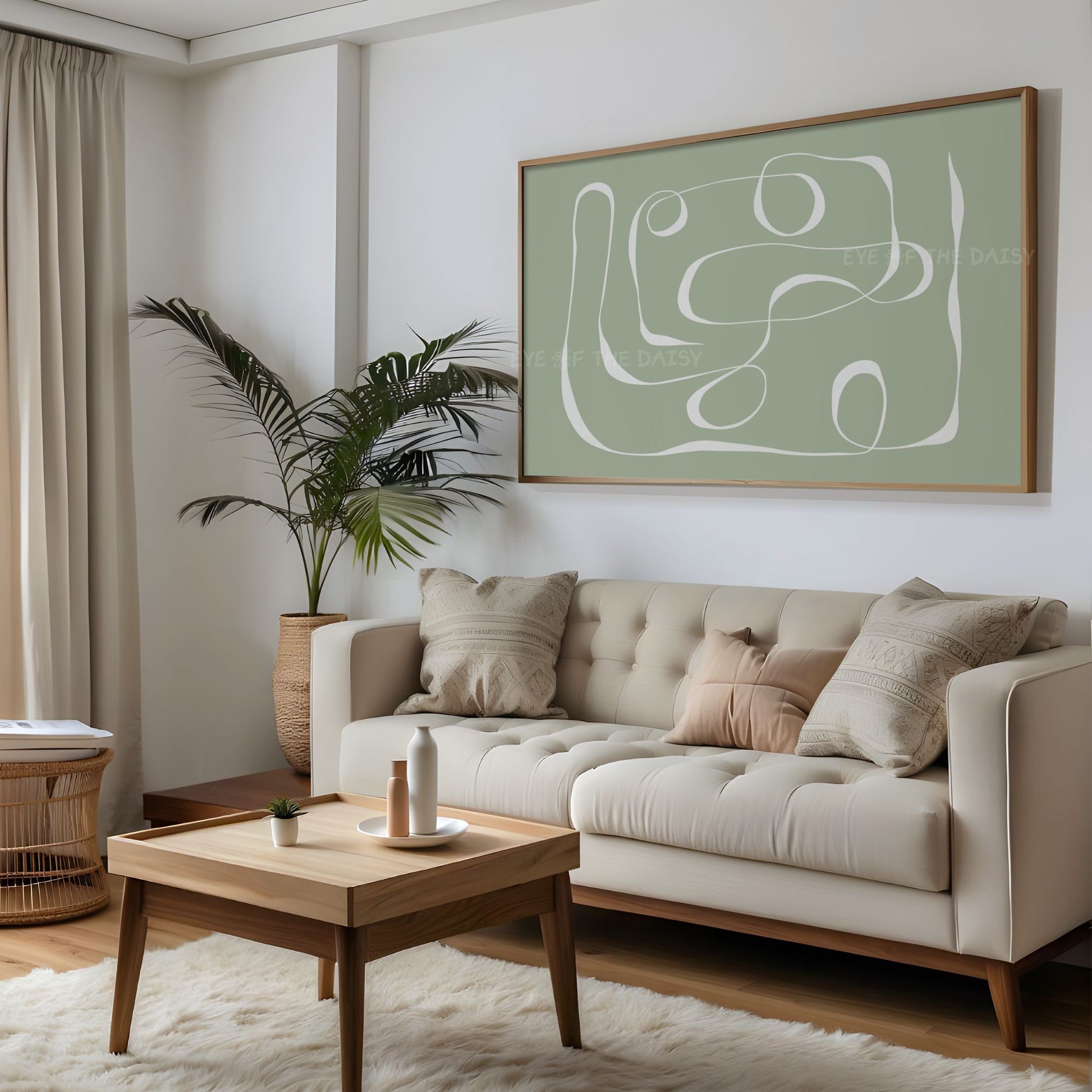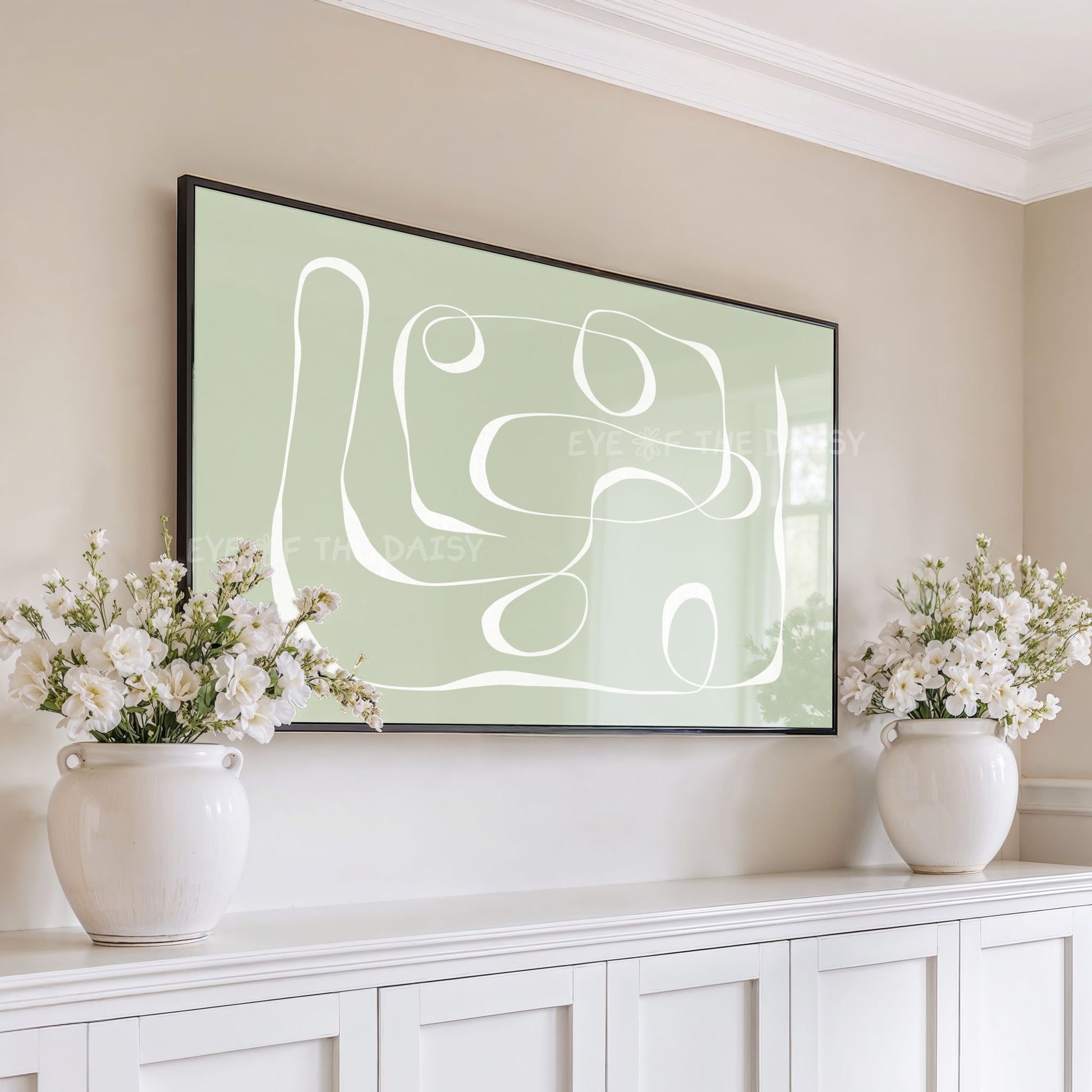 Sage Green Minimal Line Drawing 4K TV Art | Modern Boho Abstract TV Art 4K