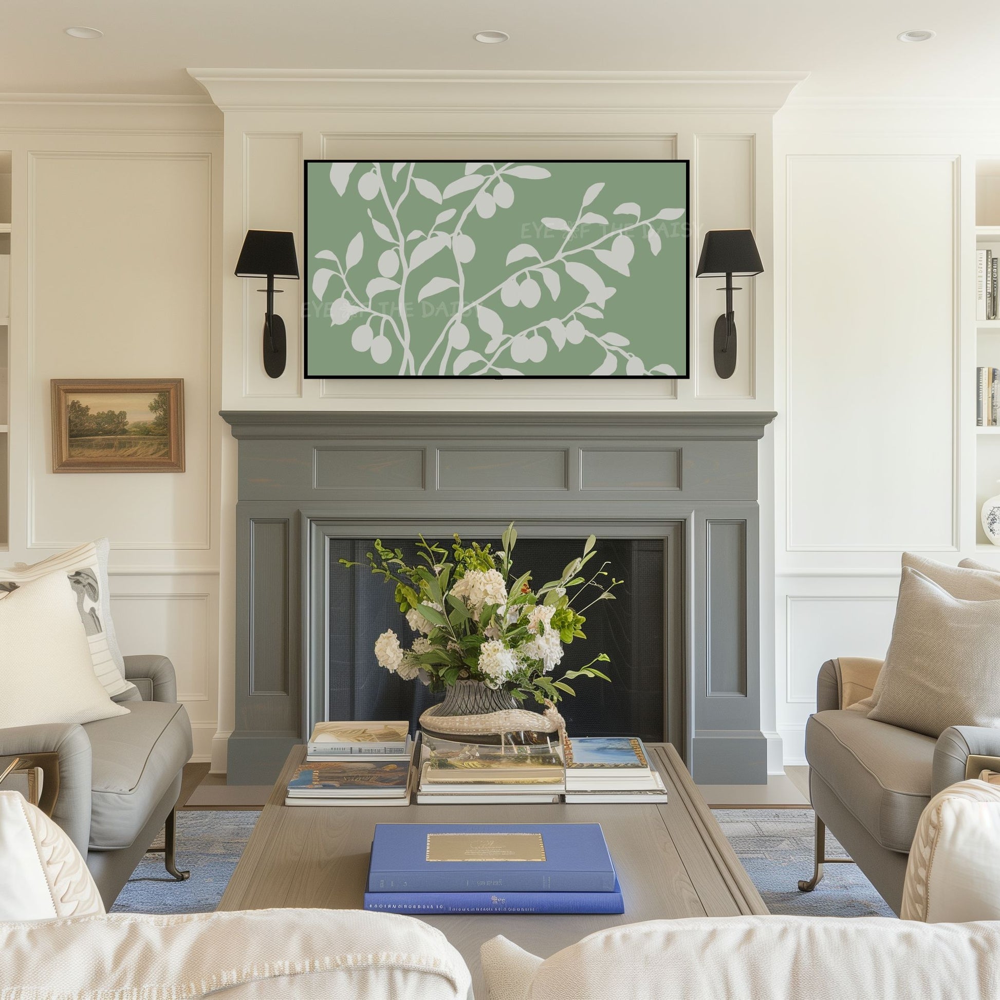 The text watermark seen in the mock-up photos is not included on the digital artwork. Colours may vary slightly depending on the TV on which the image is displayed, and all monitors display colours differently.