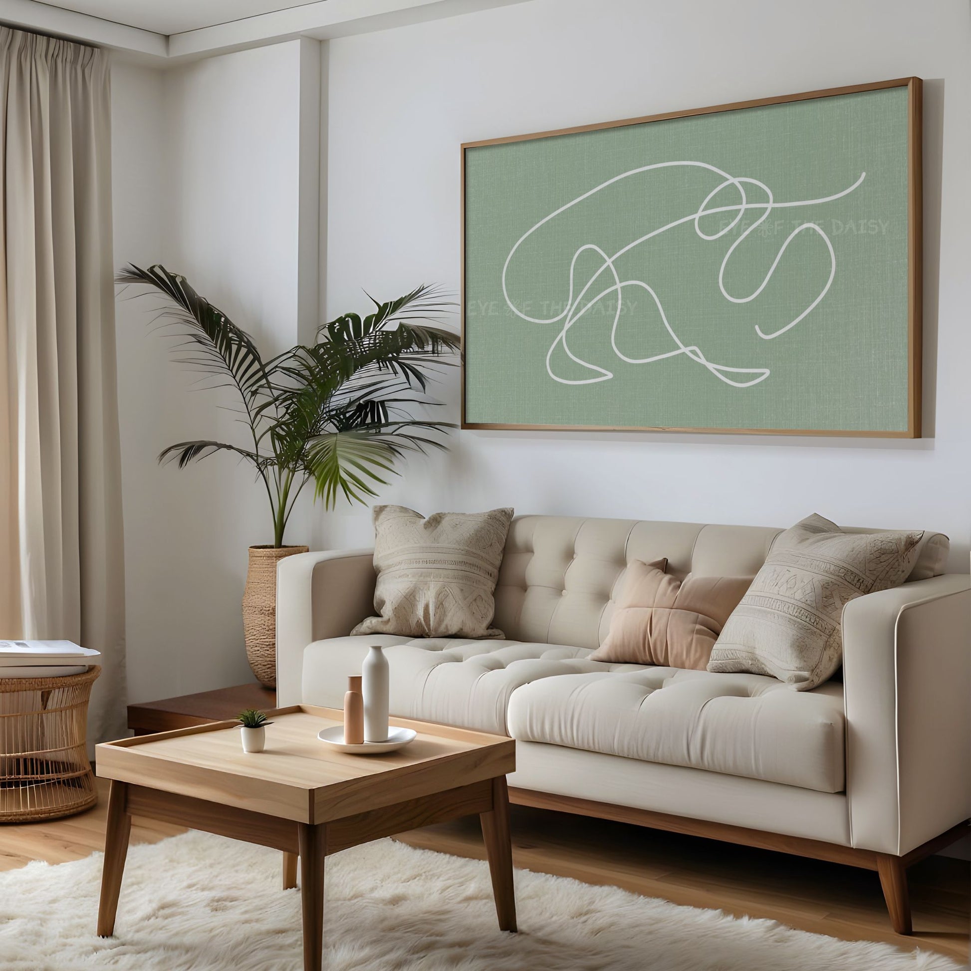 Sage Green White Minimal Scribble 4K TV Art | Boho Abstract Line Art for TV Screen