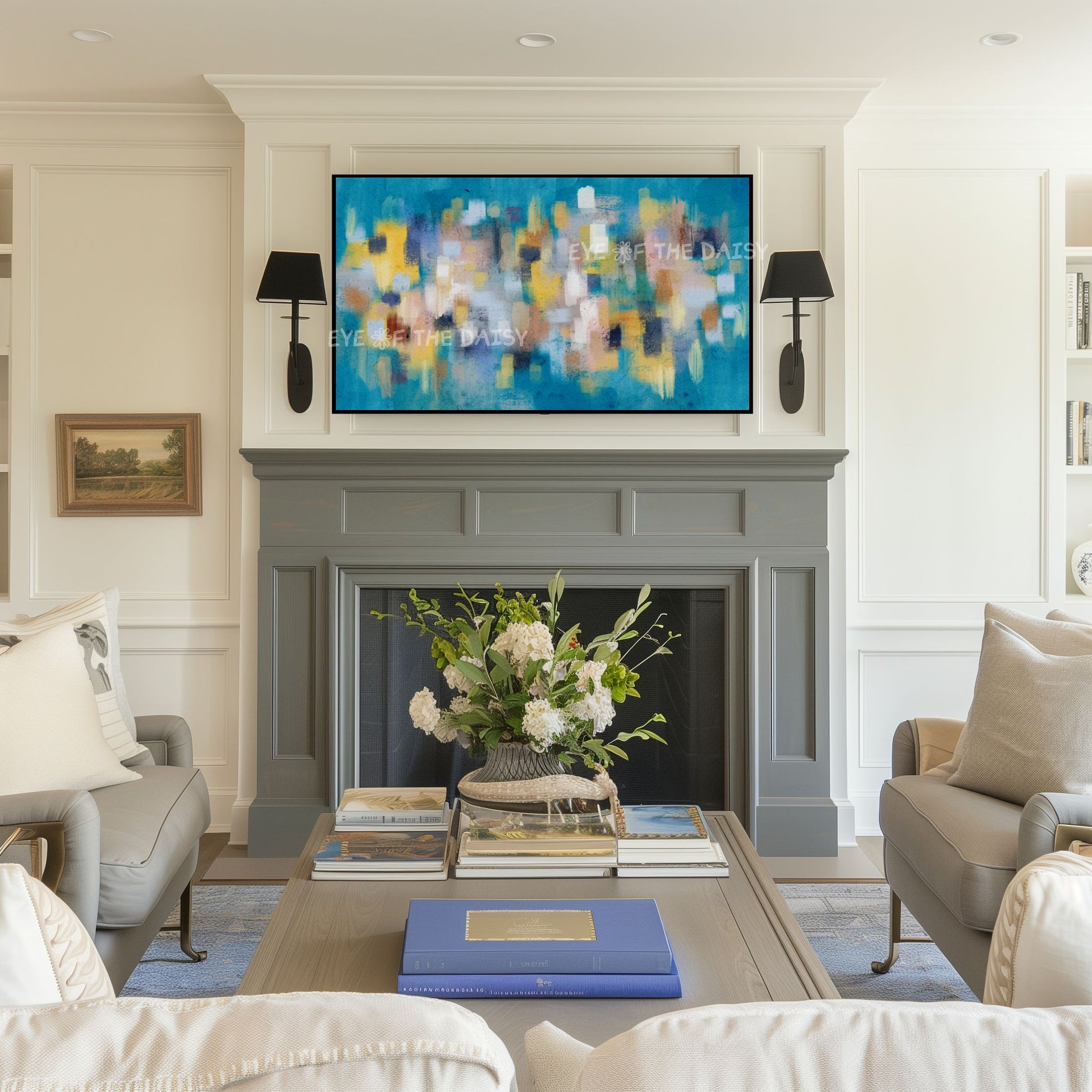 The text watermark seen in the mock-up photos is not included on the digital artwork. Colours may vary slightly depending on the TV on which the image is displayed, and all monitors display colours differently.